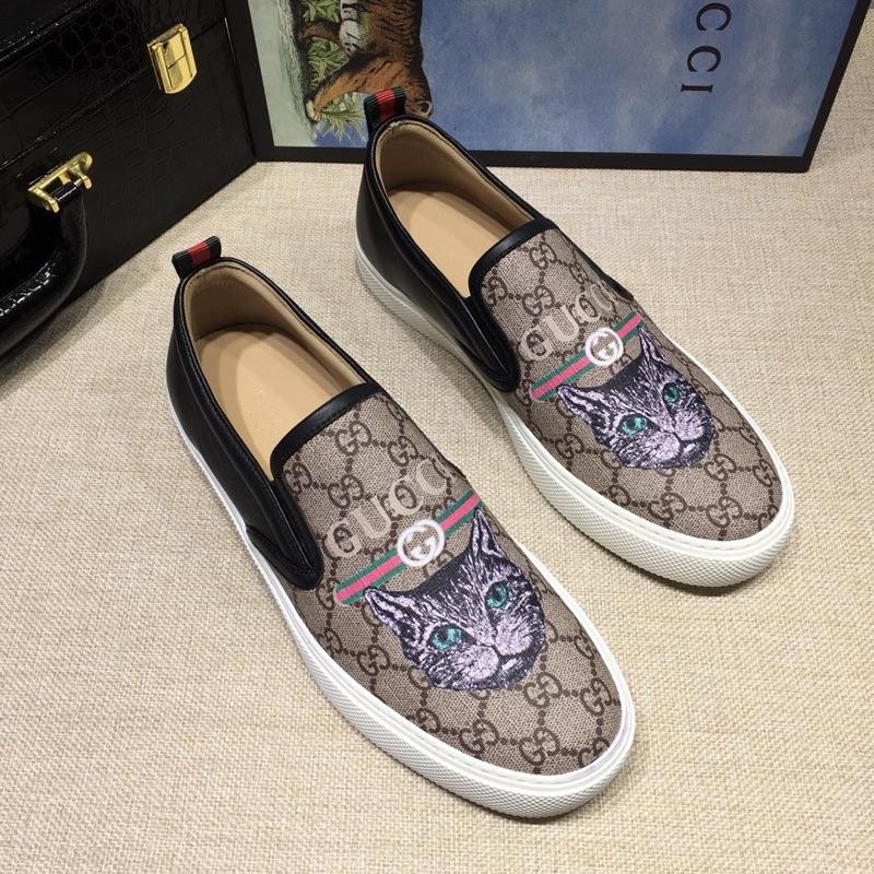 Replica Gucci Fashion Sneakers Beige and GUCCI My Cat Print with White Sole MS07692
