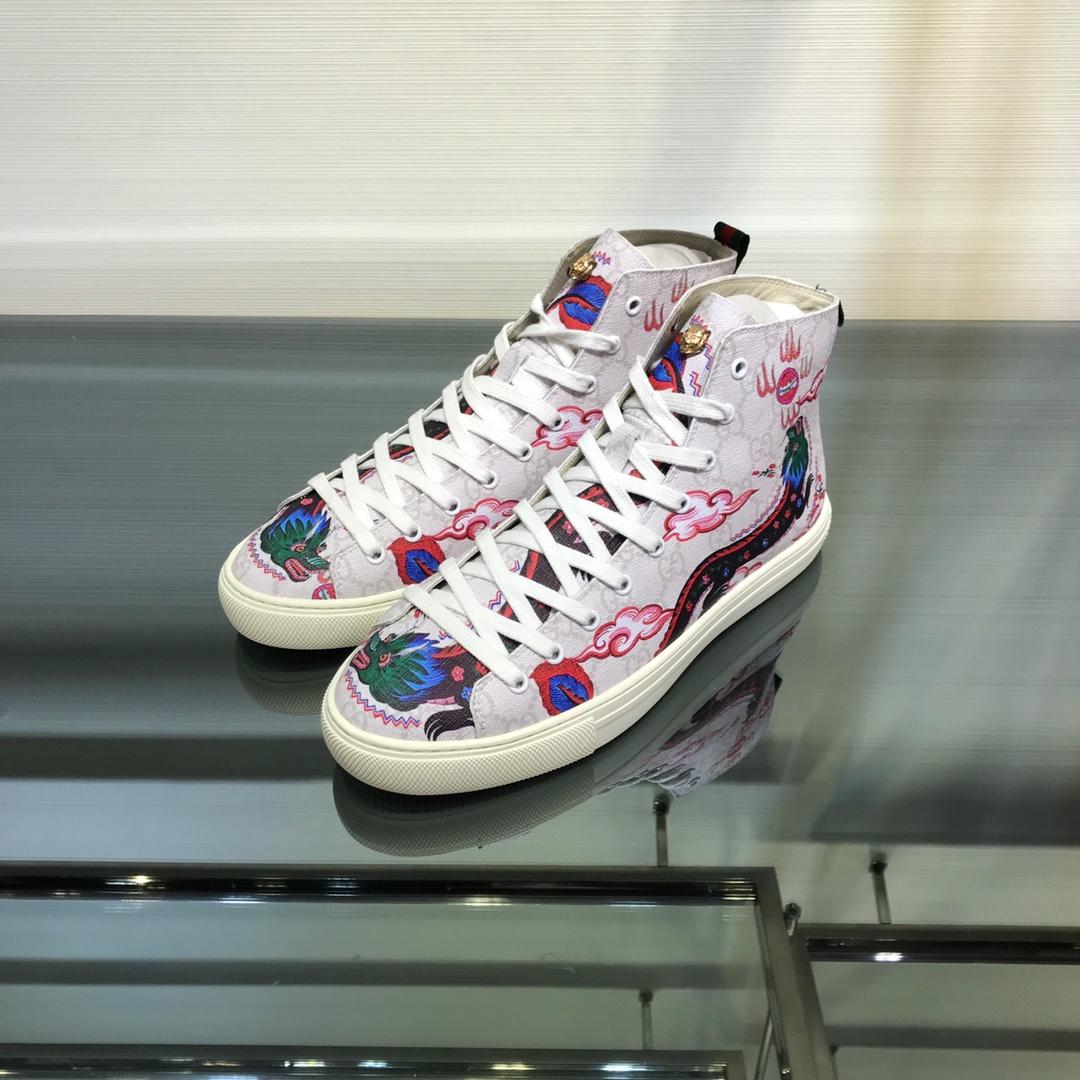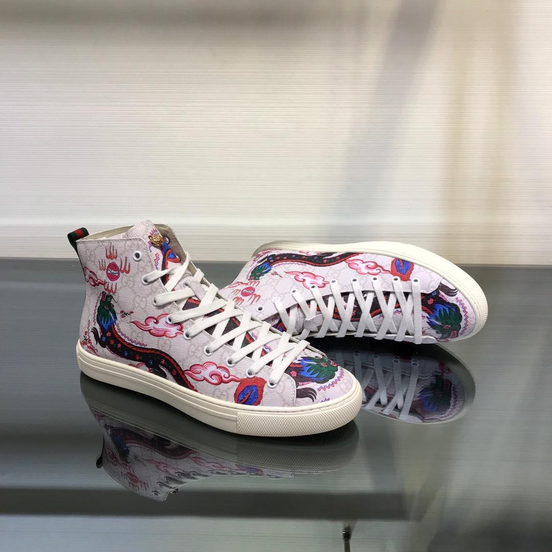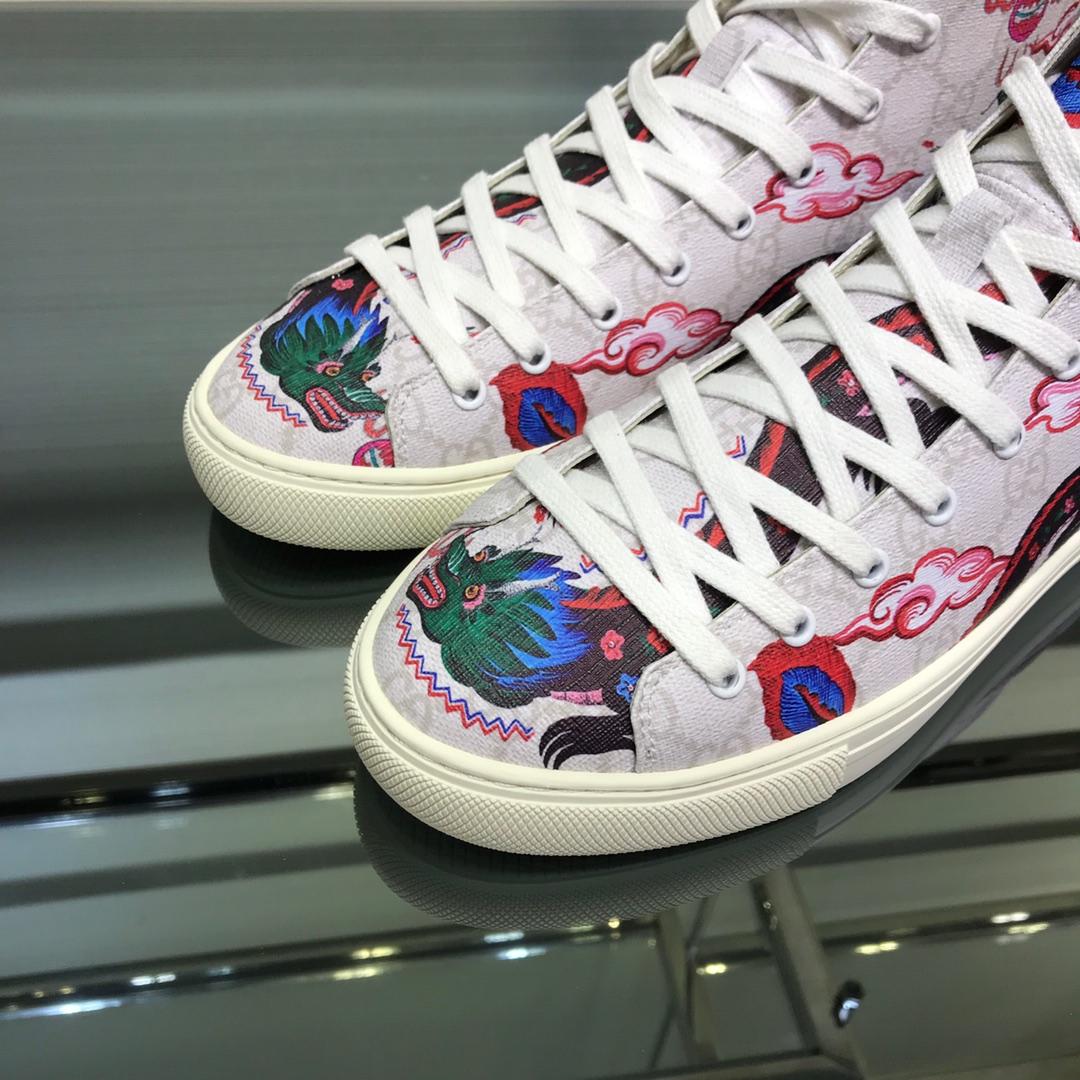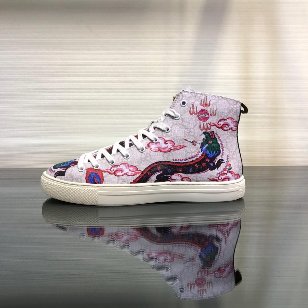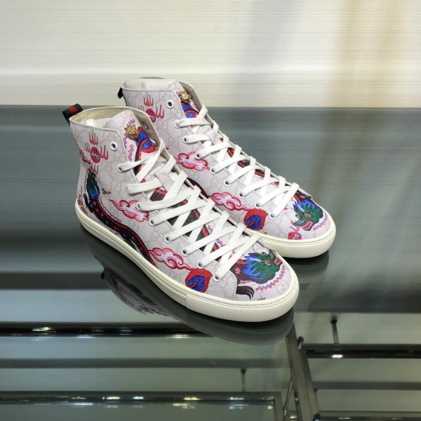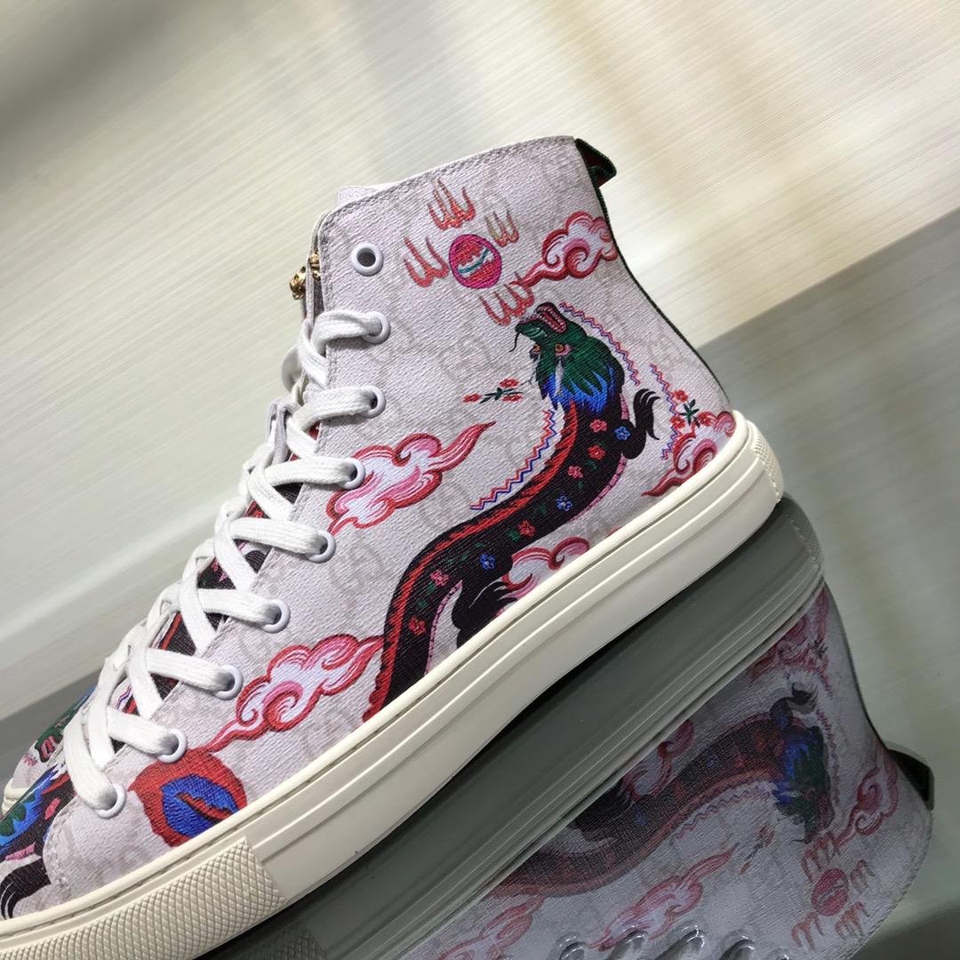 Replica Gucci High Top High Quality Sneaker White and sky dragon print with white sole MS05004