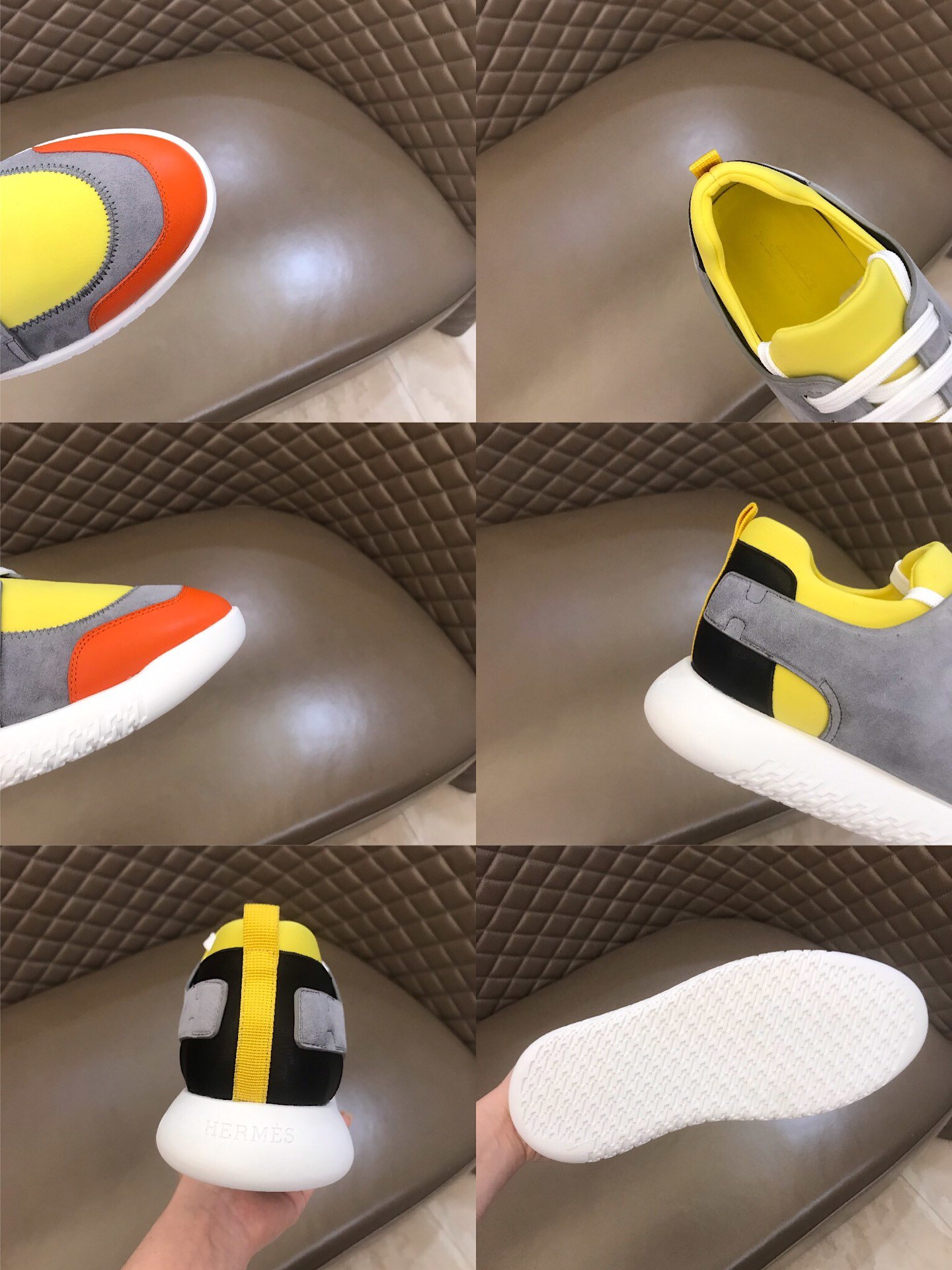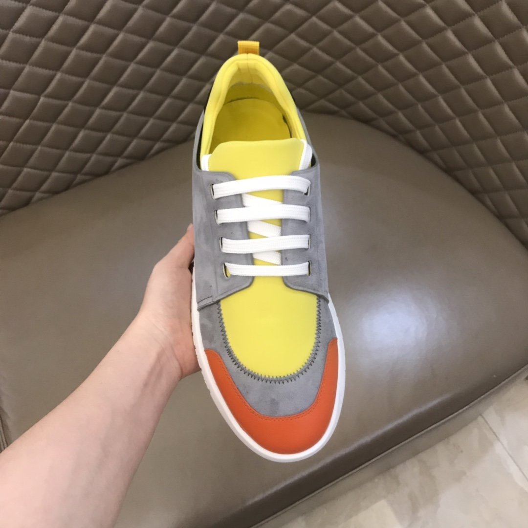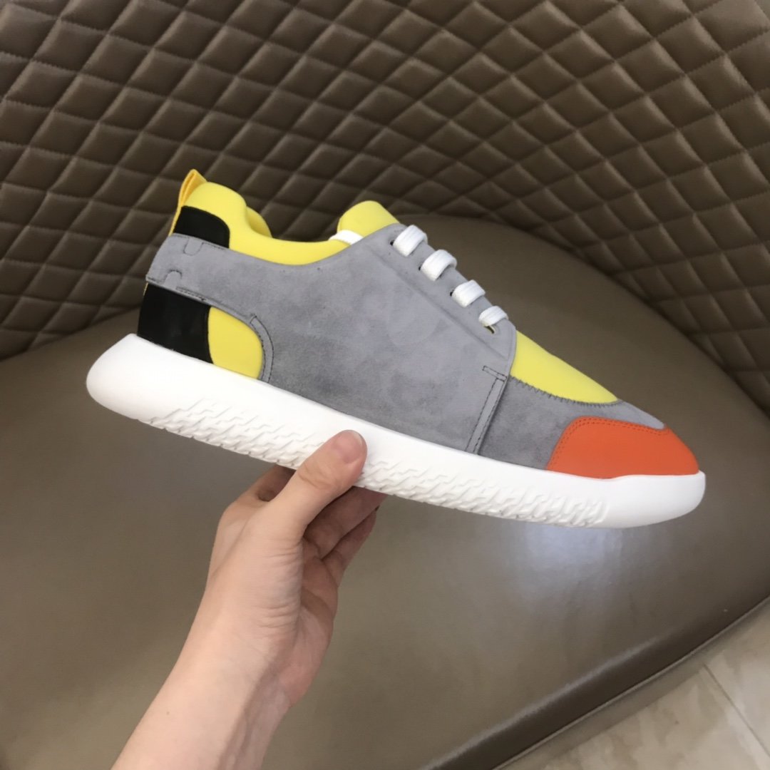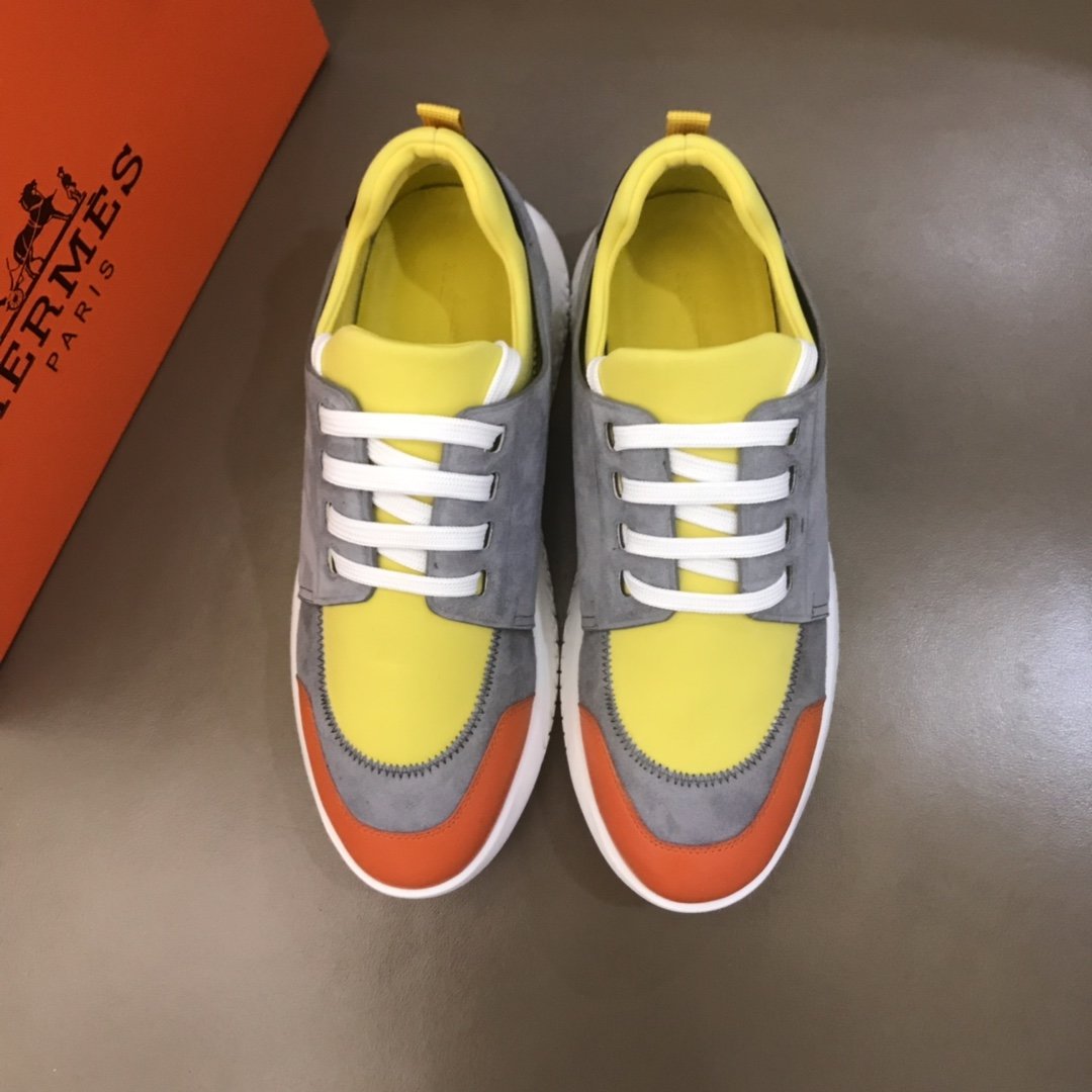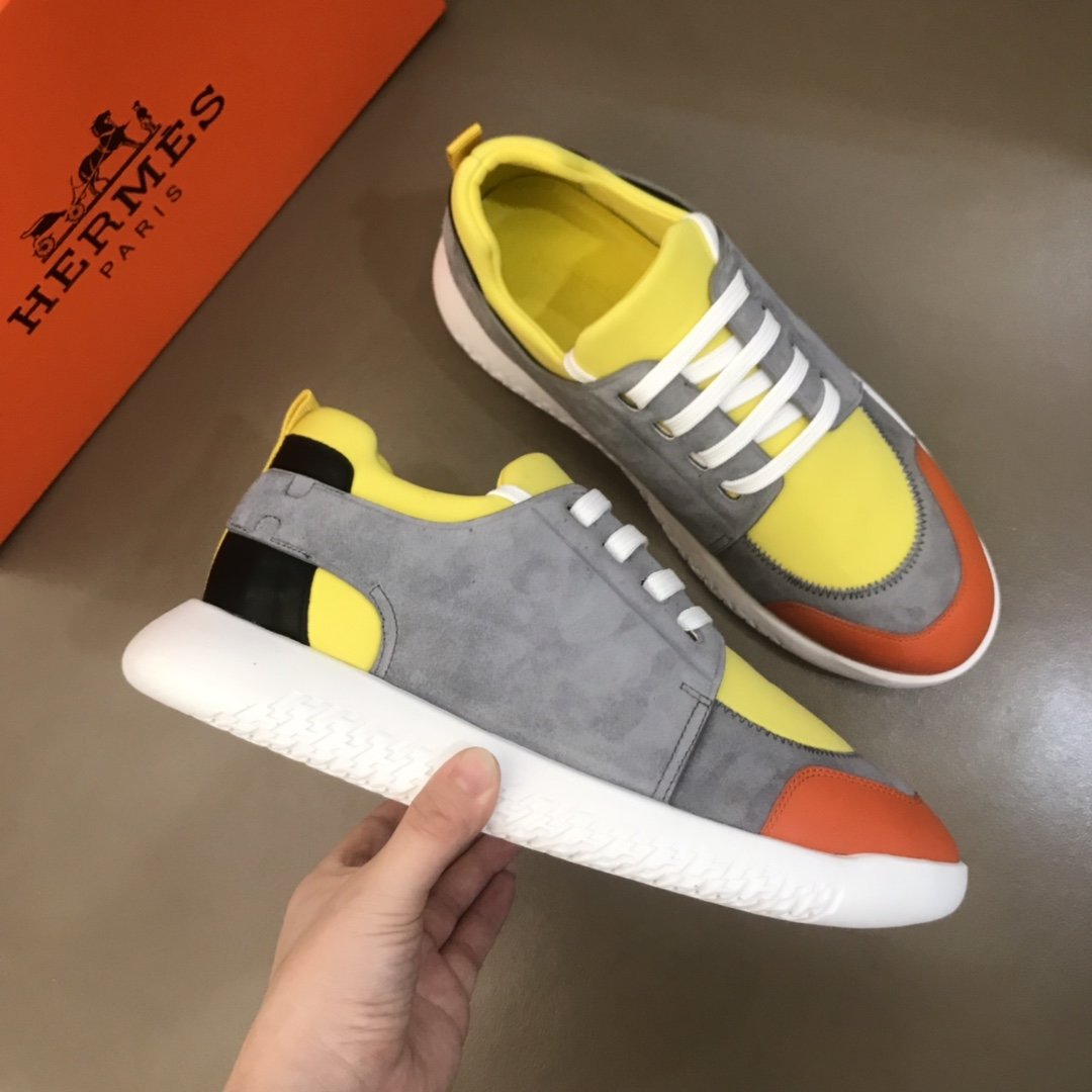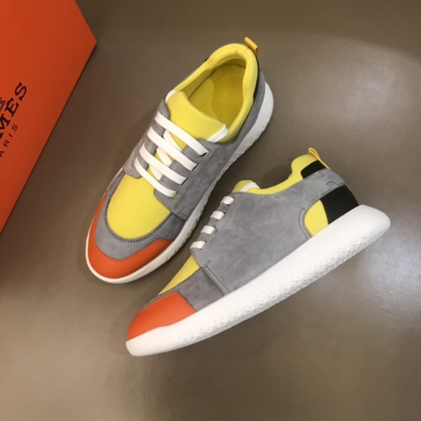 Replica Hermes High Quality Sneakers Grey suede and Yellow tongue with White sole MS021091