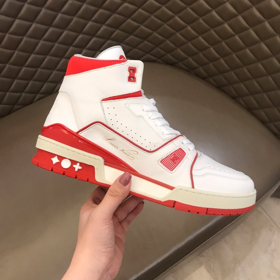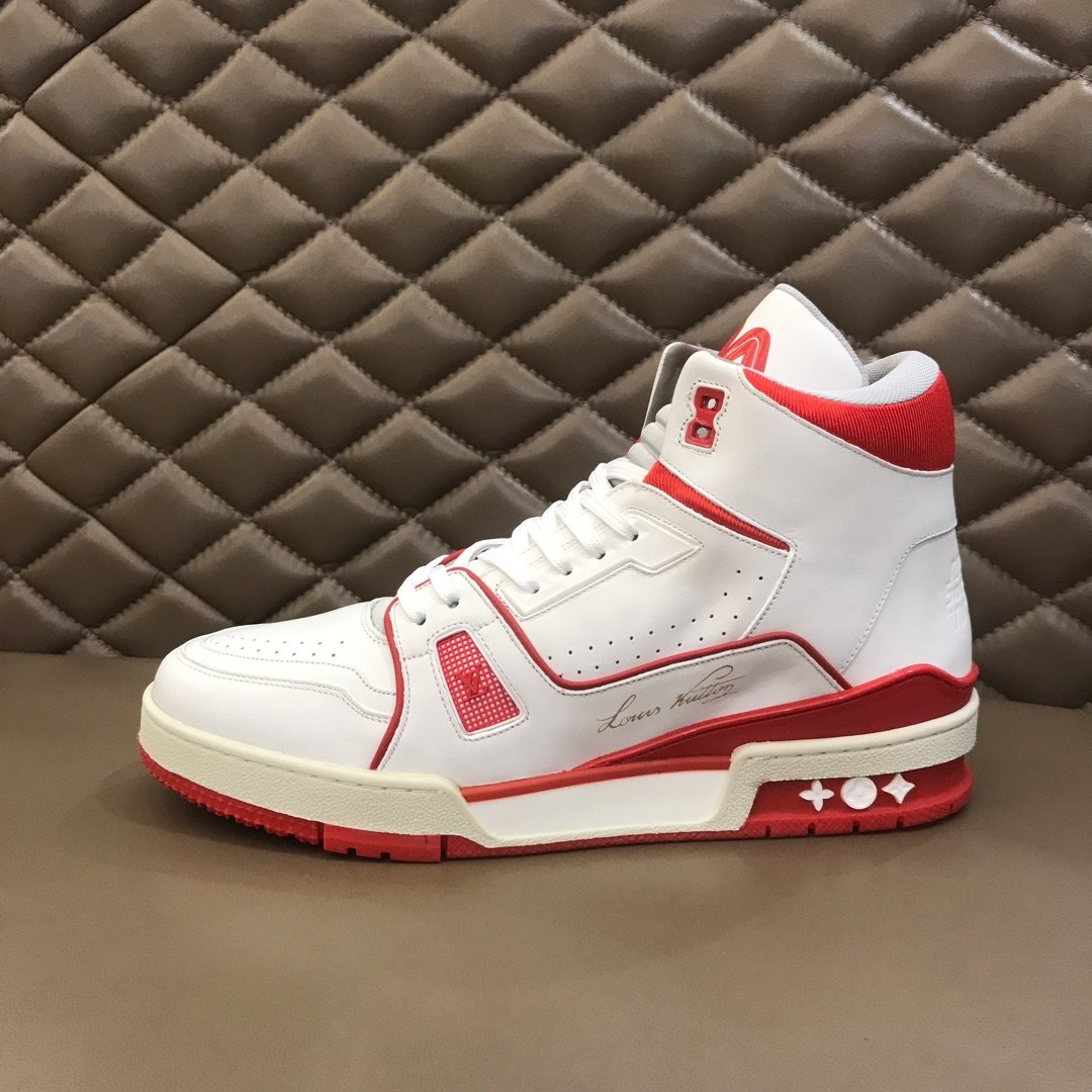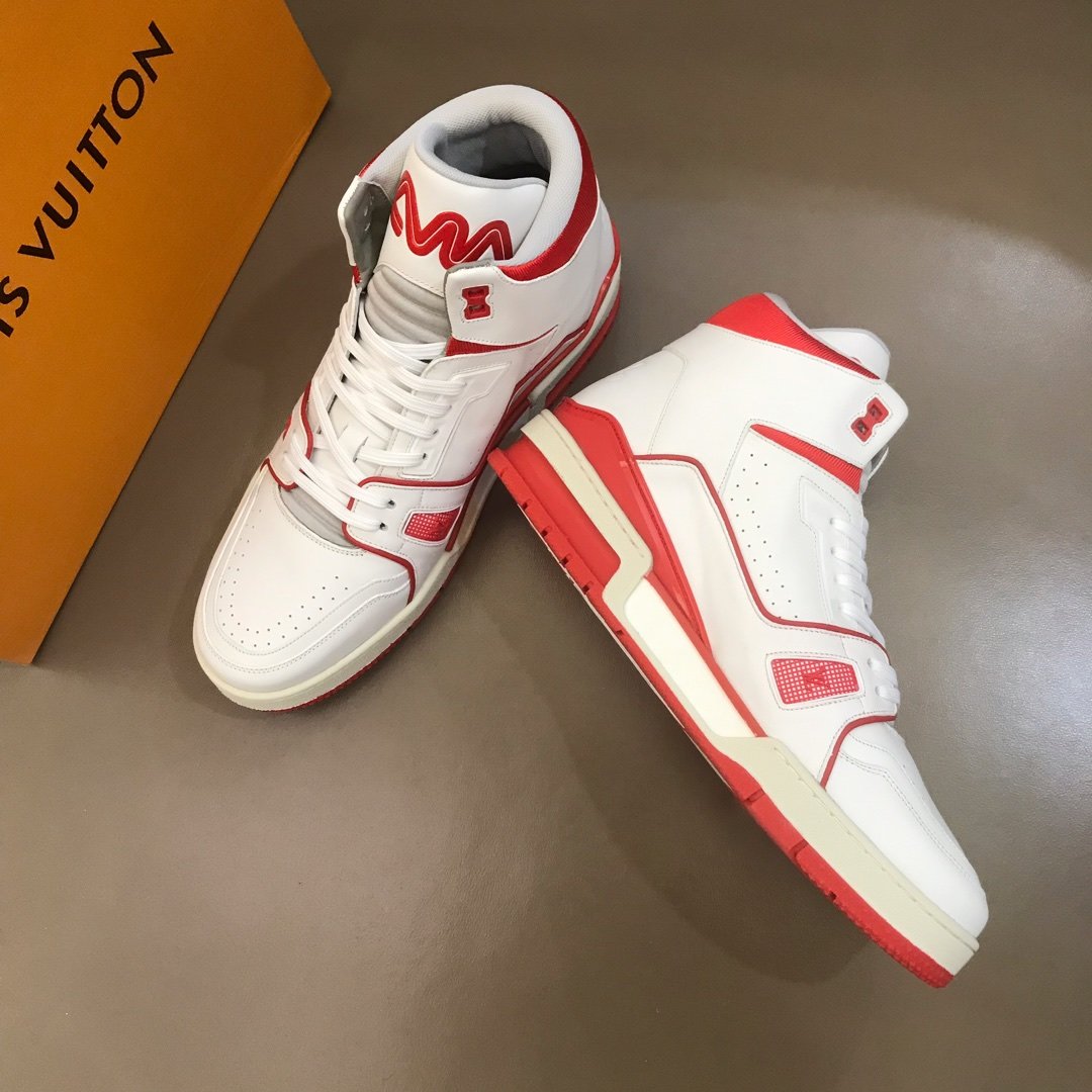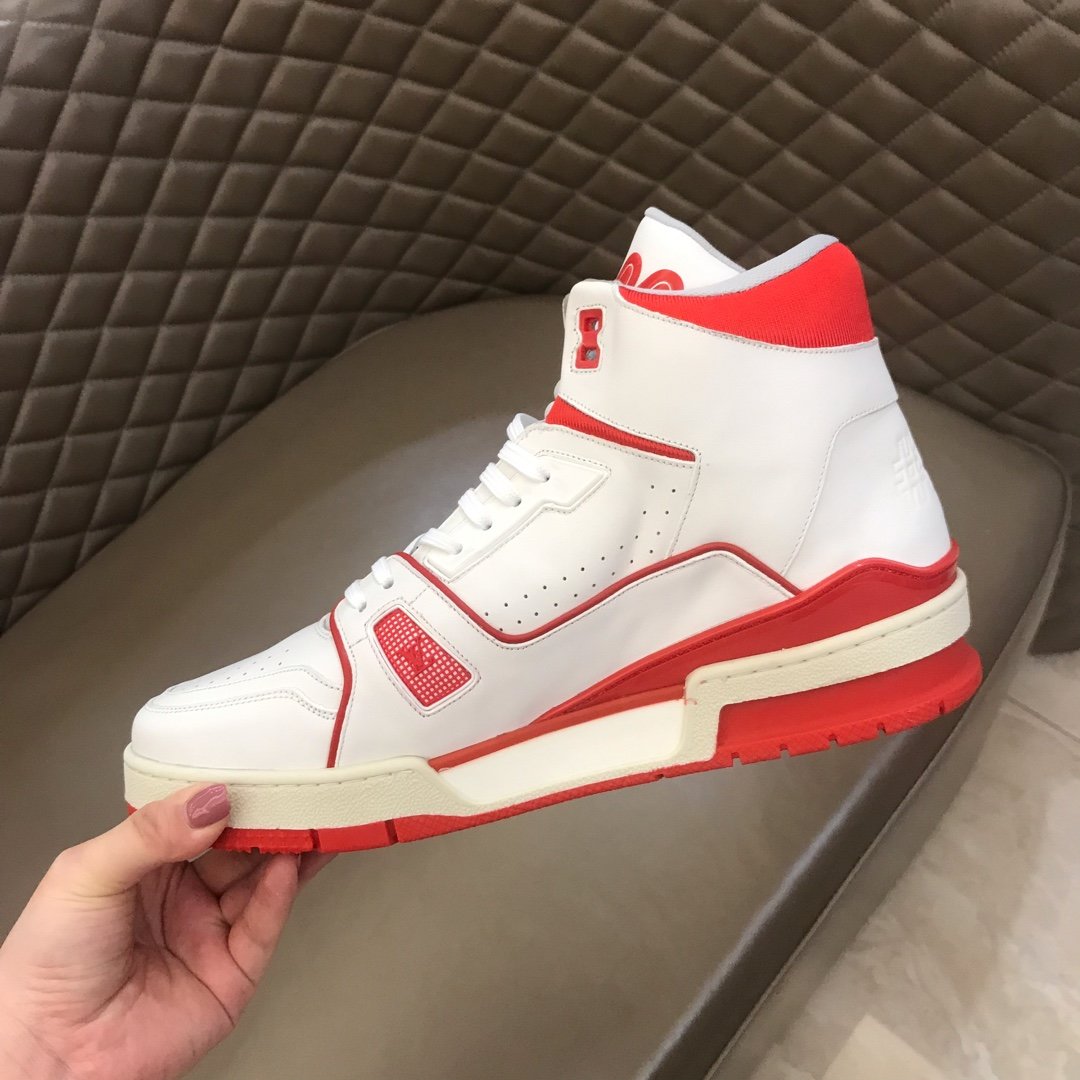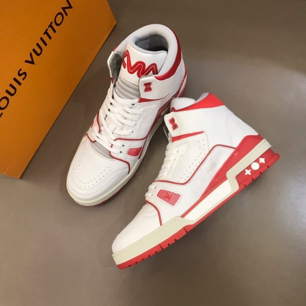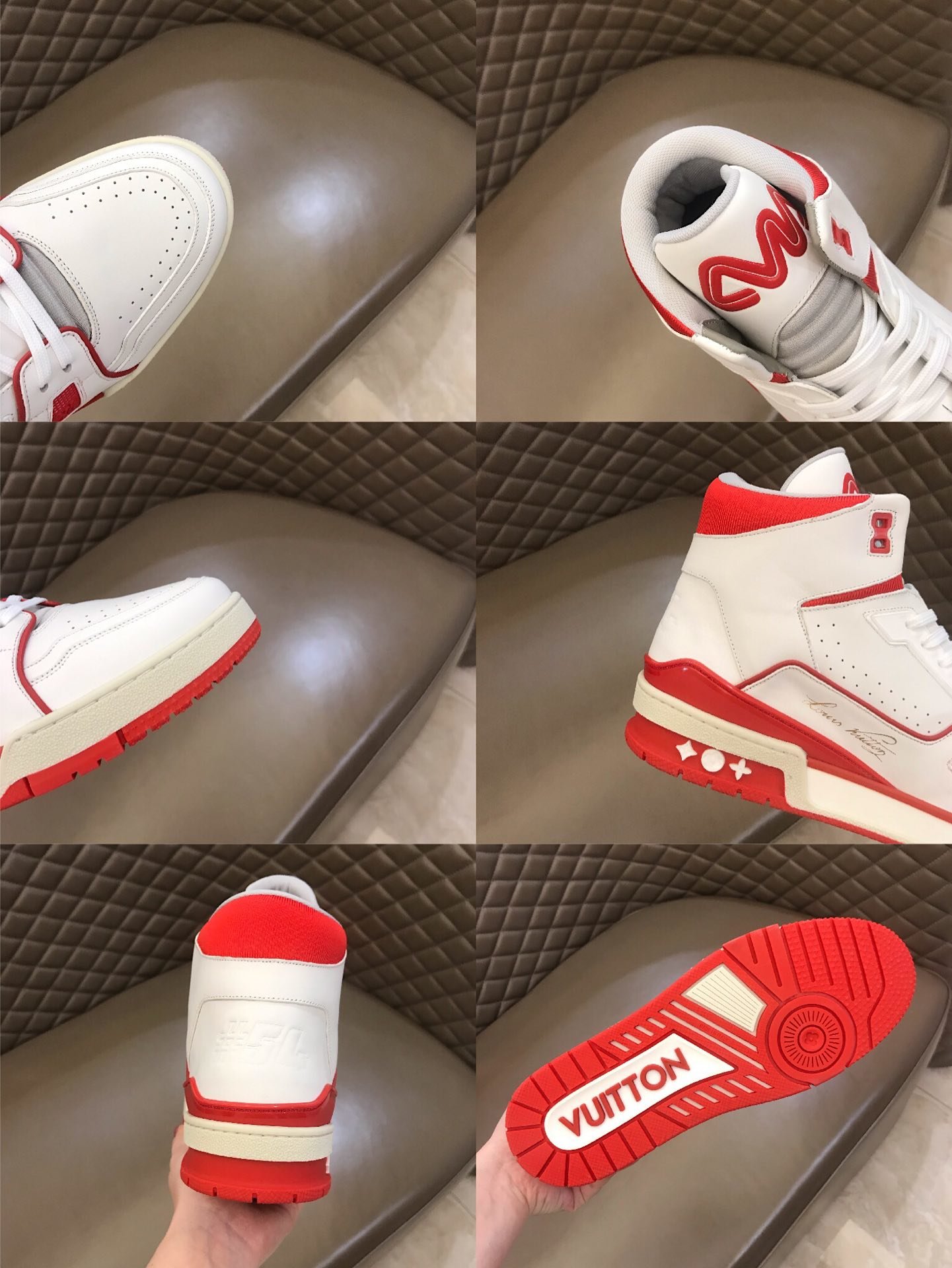 Replica Louis Vuitton High Quality Sneakers White and red leather details with white sole MS021112