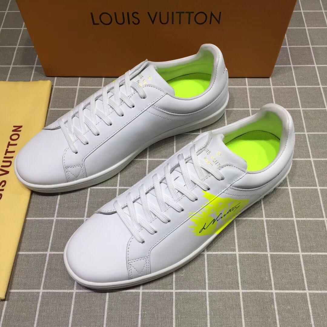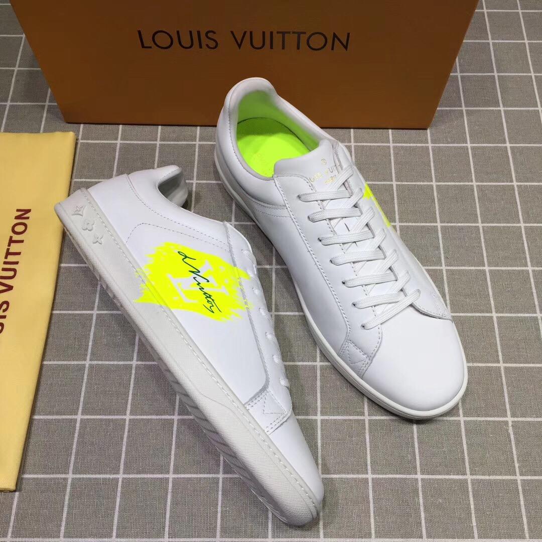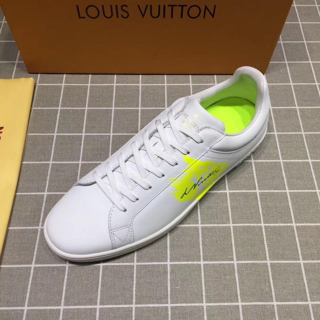 Replica Louis Vuitton Perfect Quality Sneakers White and yellow LV chevron with white sole MS071051
