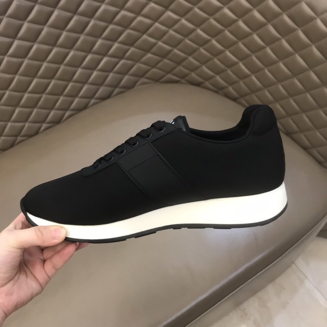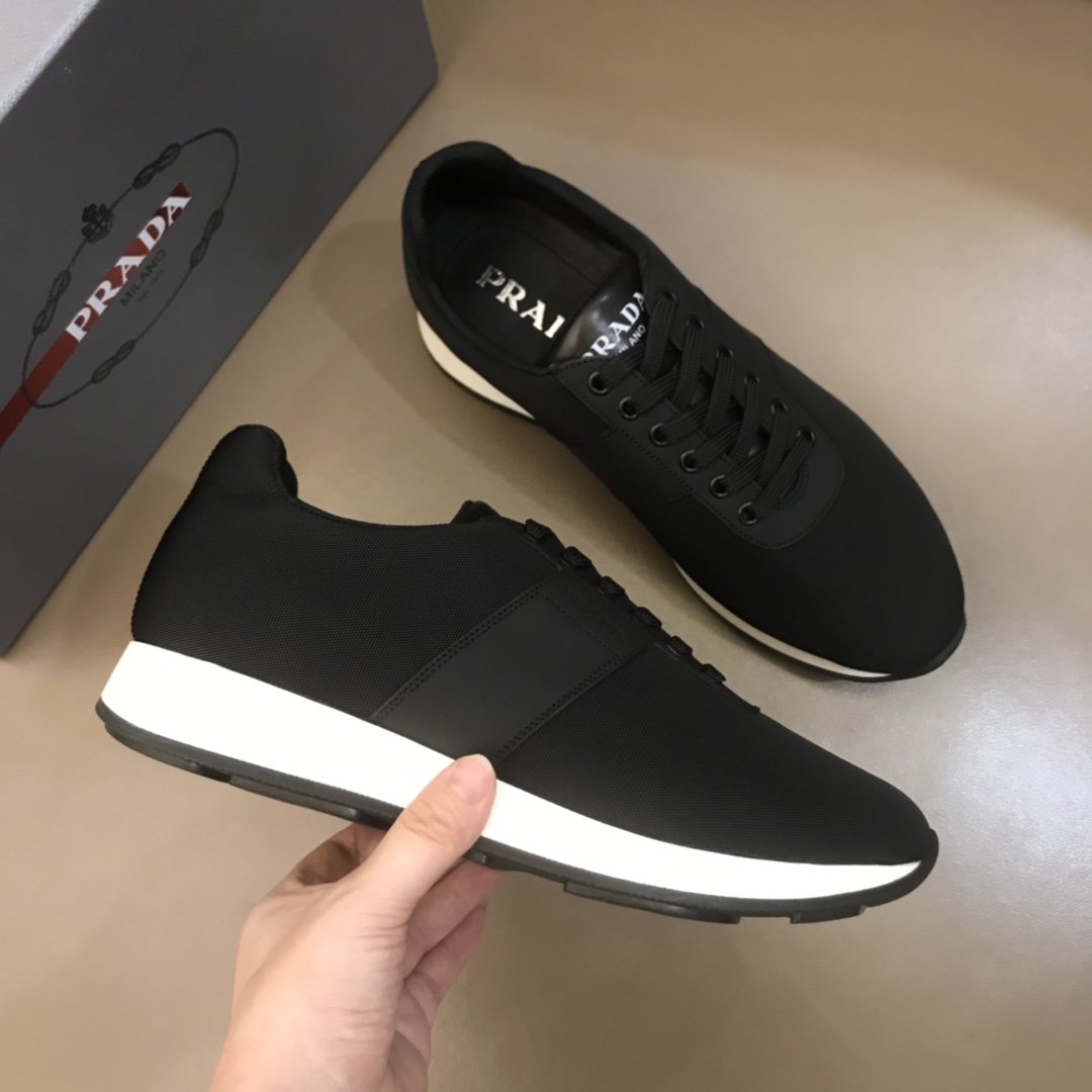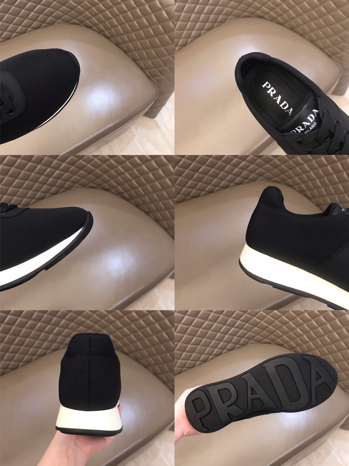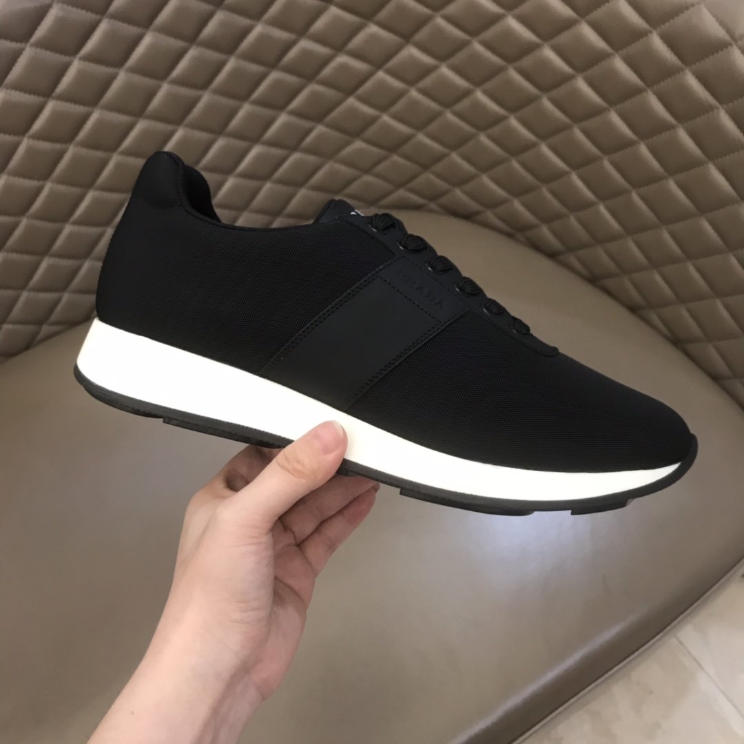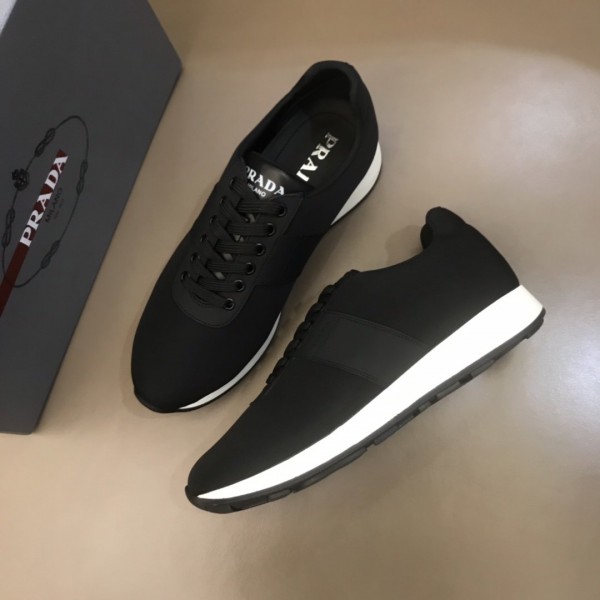 Replica Prada High Quality Sneakers Black and black leather wet with white sole MS021118
