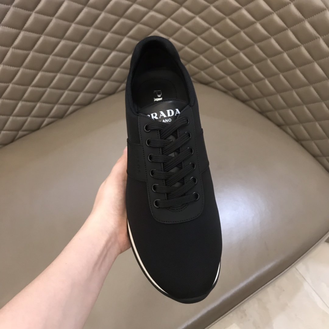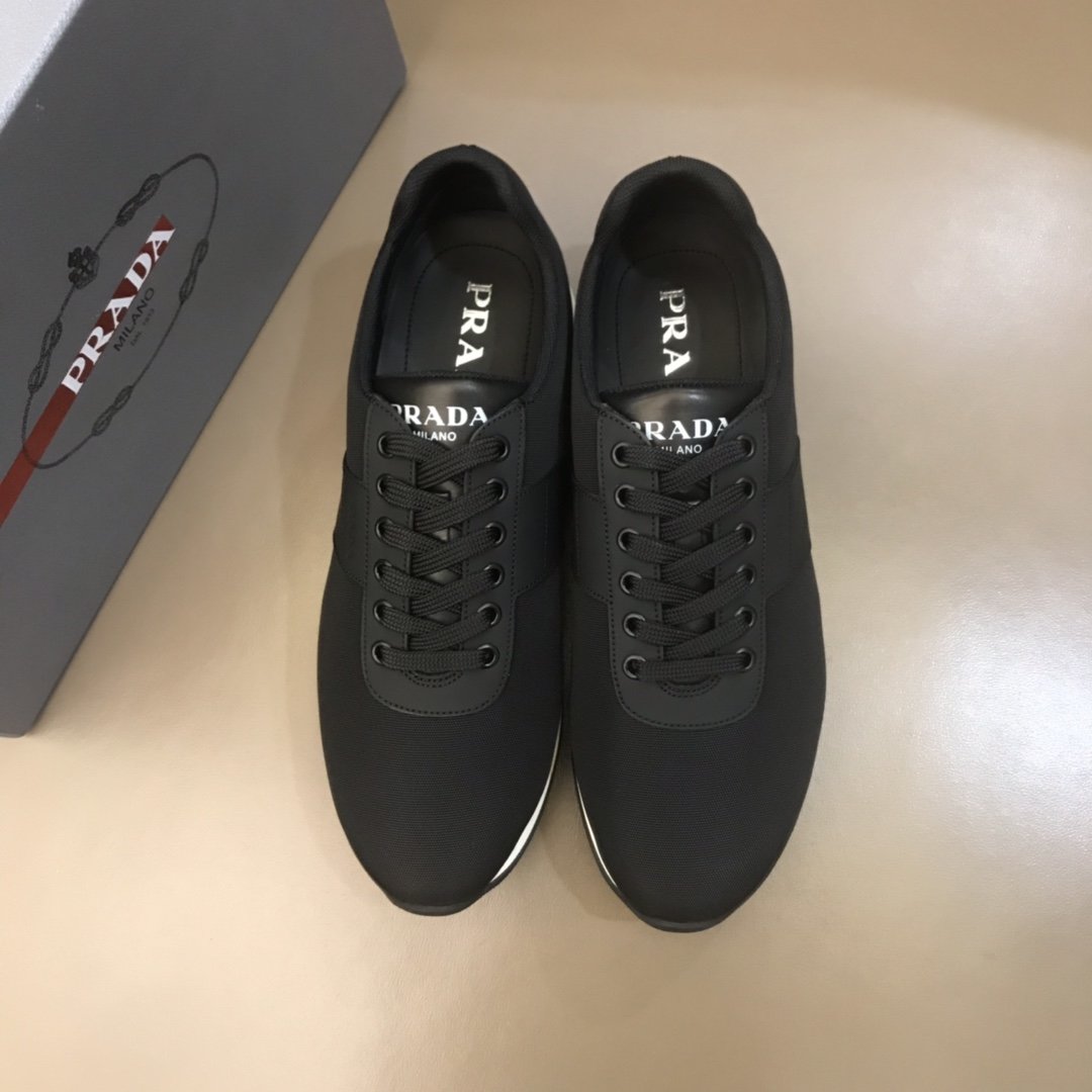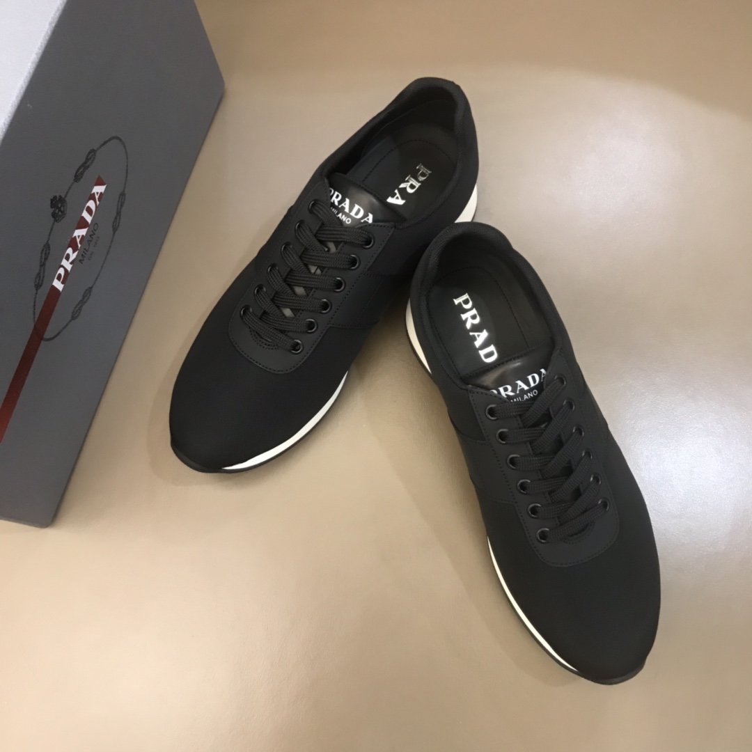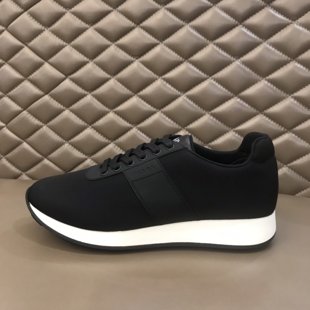 Replica Prada High Quality Sneakers Black and black leather wet with white sole MS021118