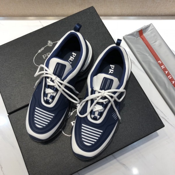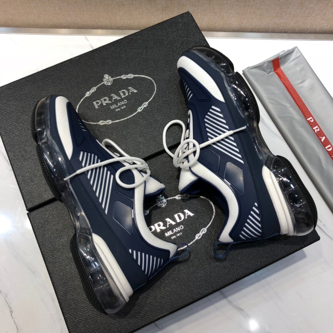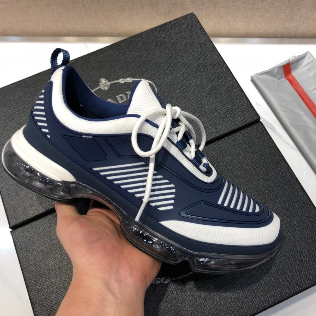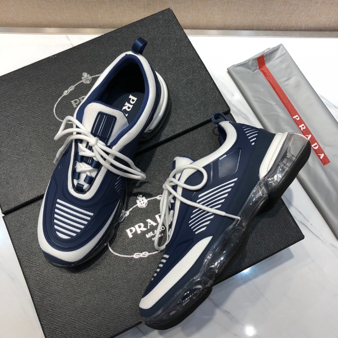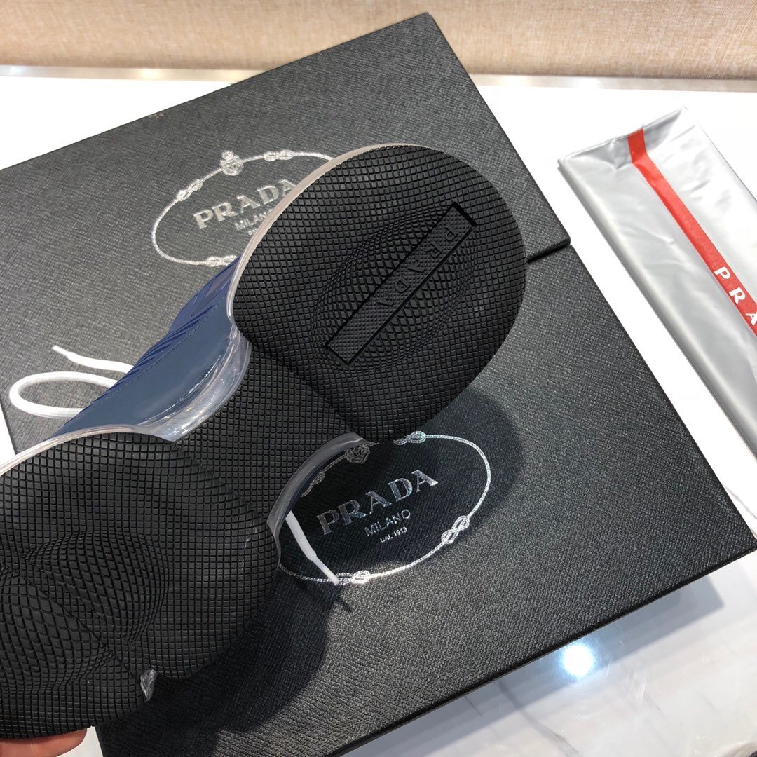 Replica Prada High Quality Sneakers White and blue rubber trim with transparent sole MS021117