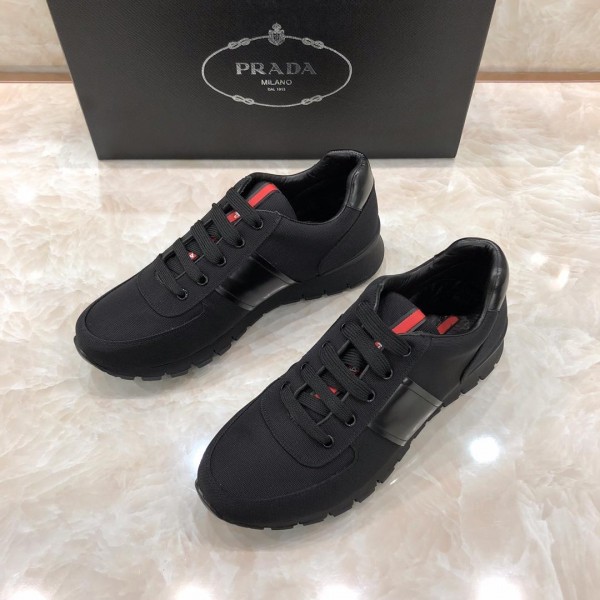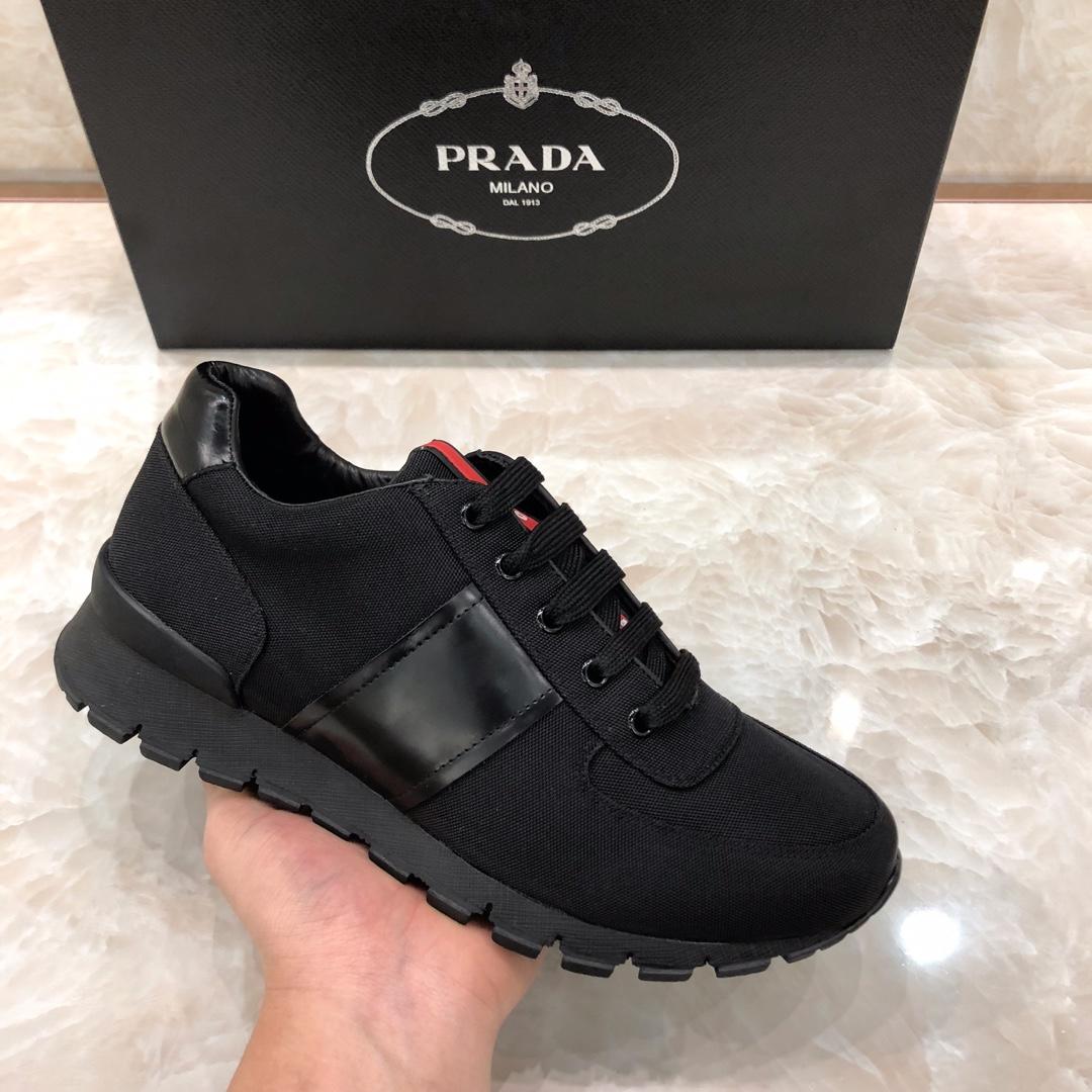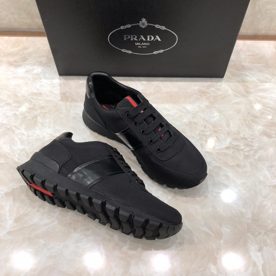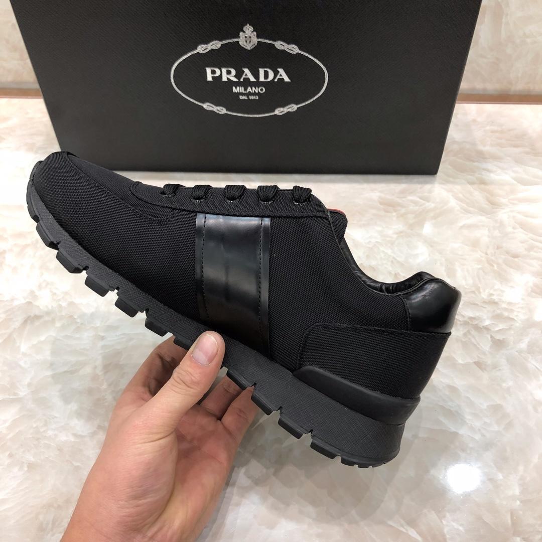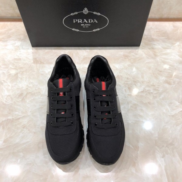 Replica Prada Perfect Quality Sneakers Black and black leather heel with black sole MS071314