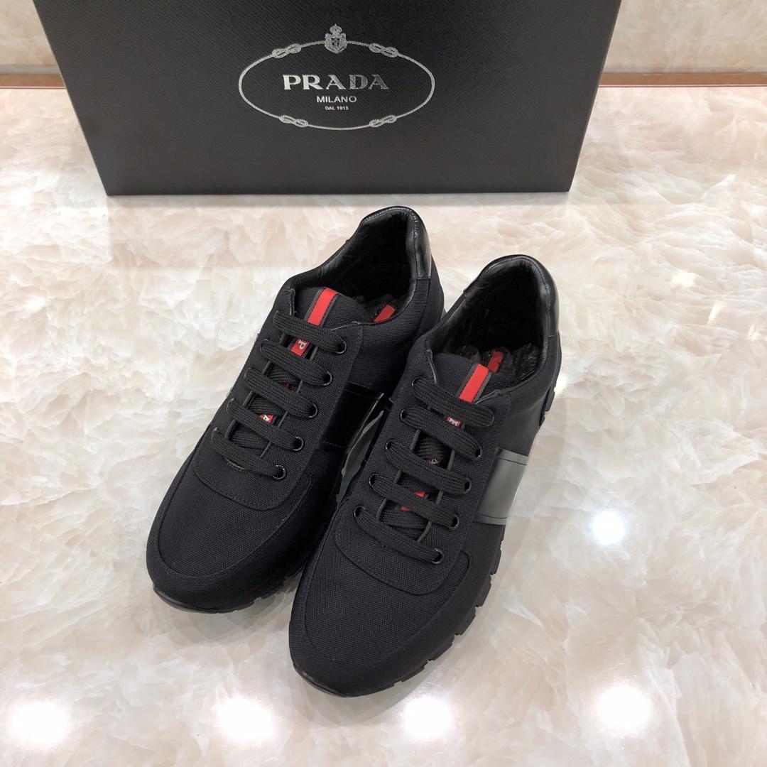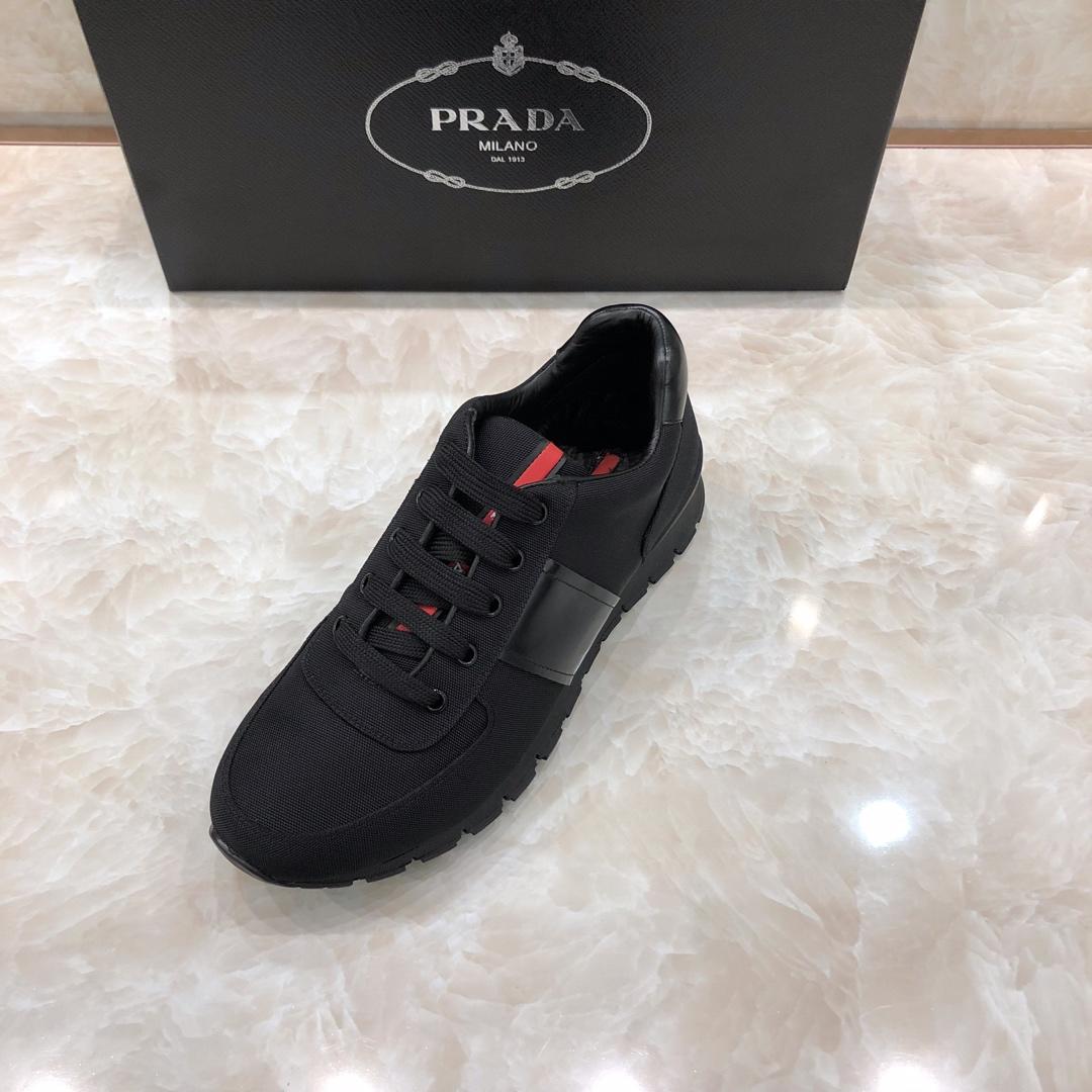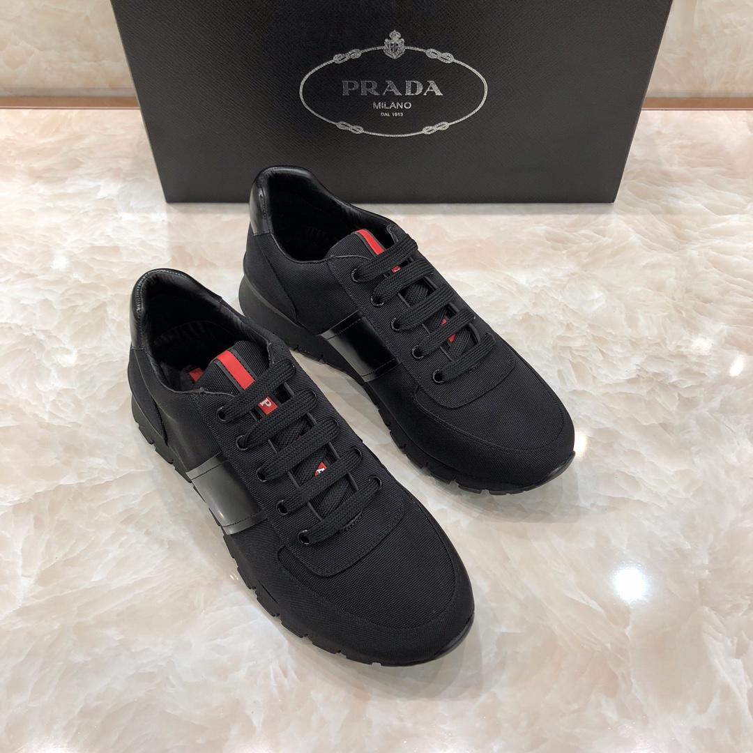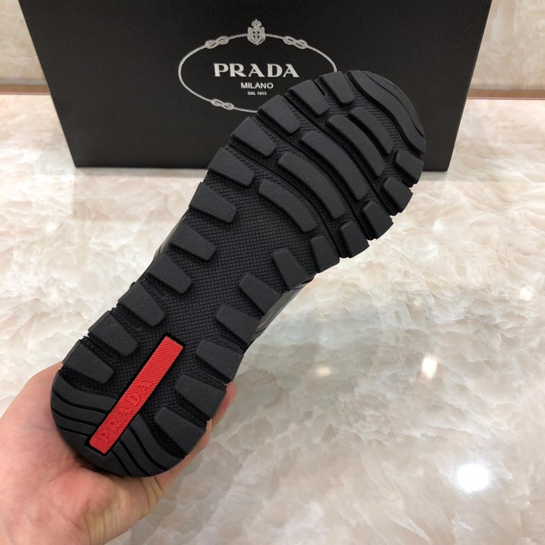 Replica Prada Perfect Quality Sneakers Black and black leather heel with black sole MS071314
